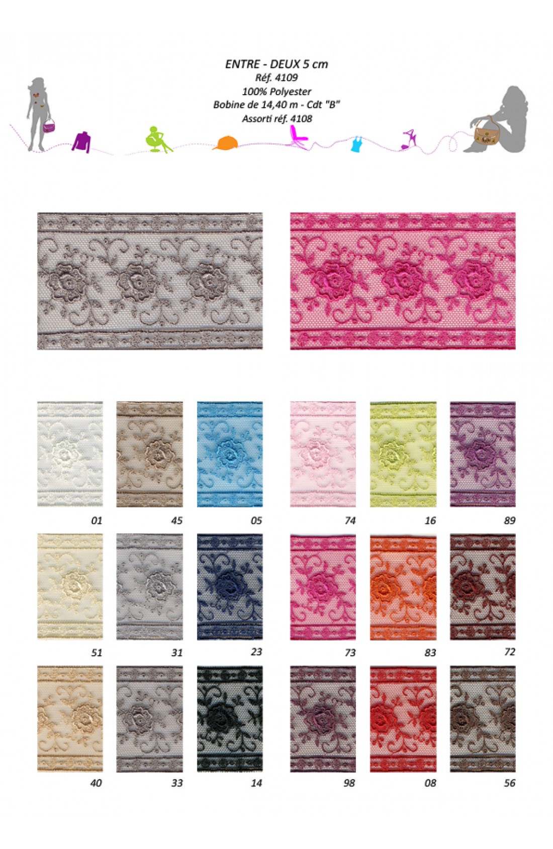 Nastro in raso decorato , ideale per lavori di sartoria.