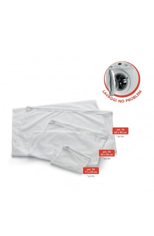 Sacchetto salva biancheria che evita l’usura dovuta allo sfregamento nel lavaggio in lavatrice e le stropicciature causate dalla centrifuga e impedisce il passaggio del colore. Chiusura con cerniera